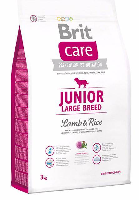 Корм для щенков крупных пород Brit Care Junior Large Breed Lamb & Rice с ягненком и рисом – полнорационный сухой корм, созданный с учетом особенностей активного периода роста щенков крупных пород.