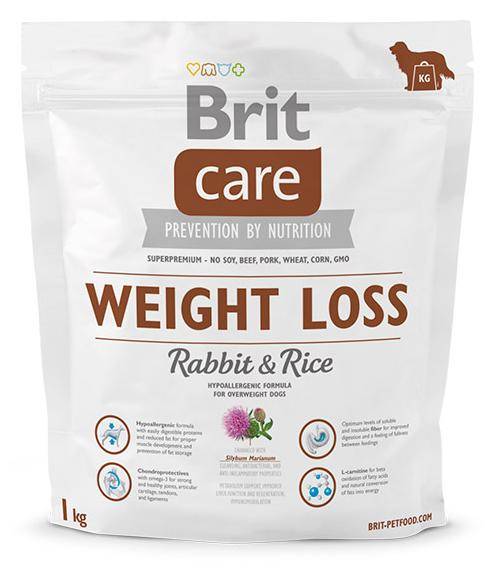 Brit Care Weight Loss Rabbit & Rice для собак с избыточным весом - полнорационный гипоаллергенный корм с кроликом и рисом для собак с избыточным весом.
