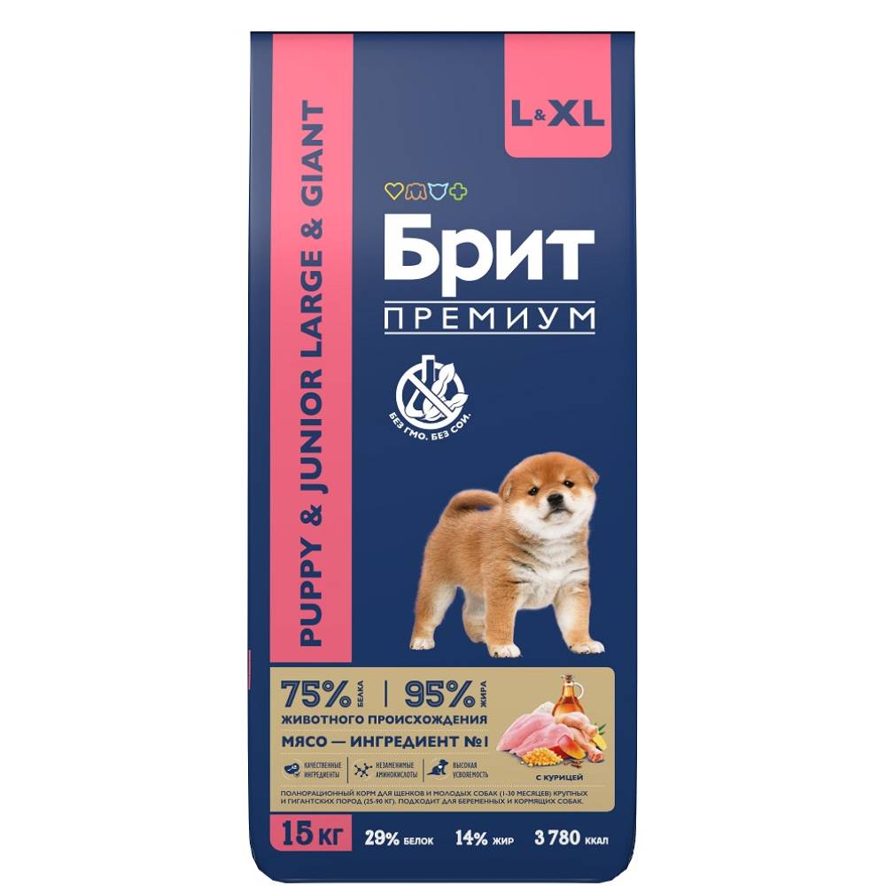 Полнорационный сухой корм премиум-класса с курицей для молодых собак (1–30 месяцев) крупных пород (25–90 кг).