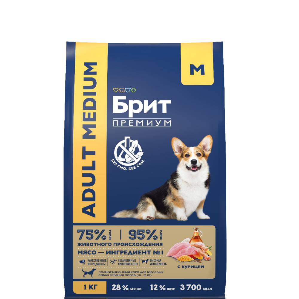 Brit Премиум Adult Medium Сухой корм для взрослых собак средних пород, с курицей, 1 кг