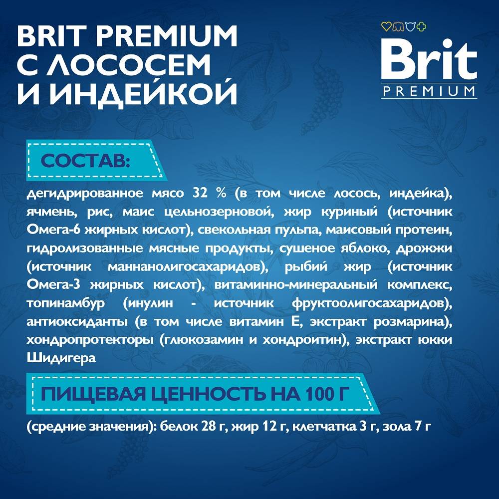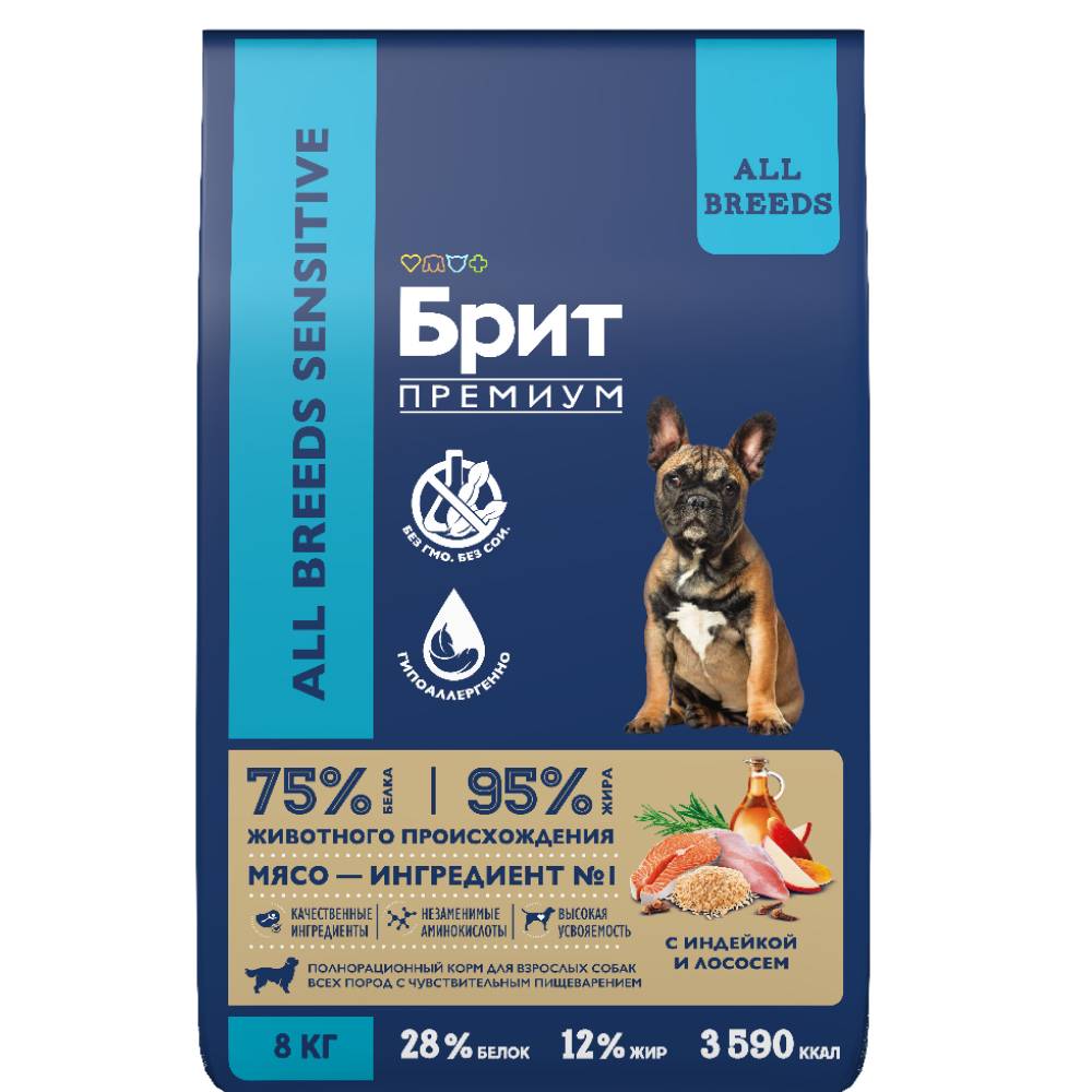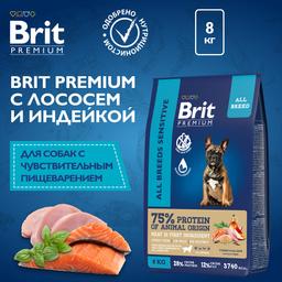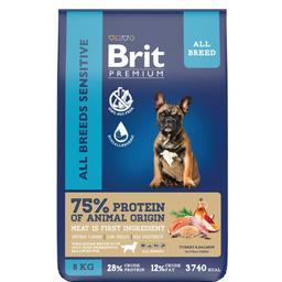 Брит Премиум Dog Sensitive. Полнорационный сухой корм премиум-класса с индейкой и лососем для взрослых собак всех пород с чувствительным пищеварением, 8 кг