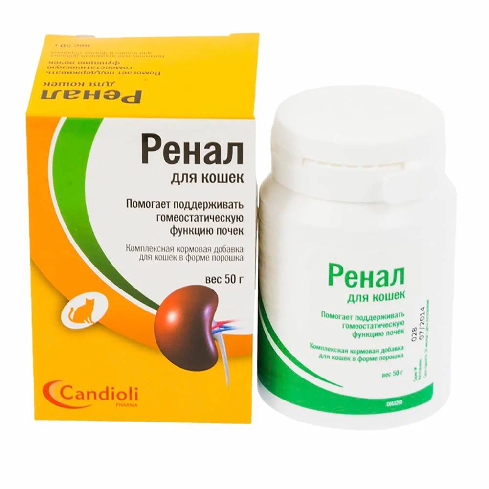 Рекомендуется для поддержания функции почек, одинаково на ранних и поздних стадиях хронической почечной недостаточности у кошек. Ренал для кошек может контролировать метаболические дисбалансы, вызванные хронической почечной недостаточностью. Компоненты препарата связывают излишки фосфатов в пище (карбонат кальция) и кальция в моче (цитрат калия), снижают их биологическую доступность, способствуют связыванию уремических токсинов (хитозан) и улучшению состояния животного.