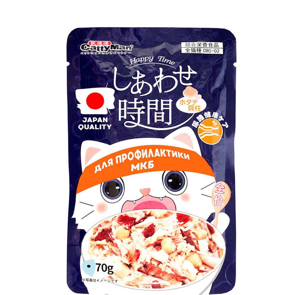 Функциональный влажный корм «Момент счастья» на основе морского гребешка и тихоокеанского тунца для профилактики МКБ у кошек Японского бренда Japan Premium Pet.