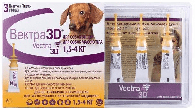 Защита от блох и клещей до 1 месяца. Вектра 3D для собак весом 1,5-4 кг (3 пипетки/упаковка) производства CEVA способствует эффективному избавлению от эктопаразитов у собак. Может применяться в качестве профилактического средства, защищая от заражений в период активной деятельности блох и клещей. Имеет удобную упаковку для простого применения, наносится вдоль позвоночника на кожу.