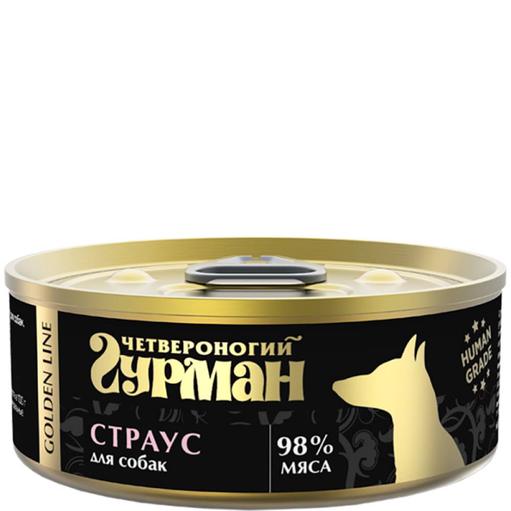 Четвероногий Гурман Golden Line Влажный корм (консервы) для собак, со страусом, 100 гр.