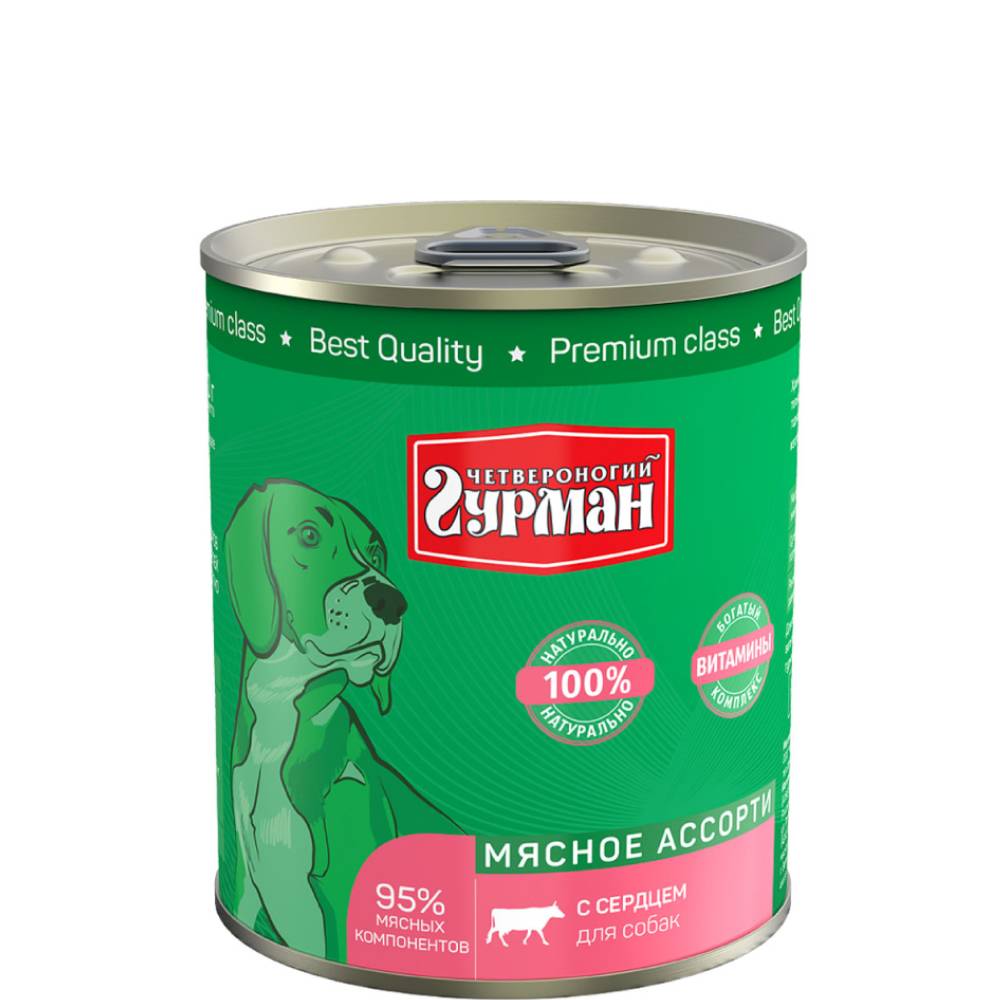 Четвероногий Гурман Консервы для собак Мясное ассорти с сердцем, 340 г