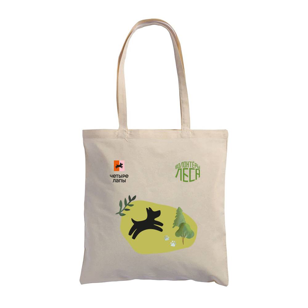 ЧЕТЫРЕ ЛАПЫ Сумка хлопковая для шоппинга Carryme Волонтёры леса, без надписи, 140 г/м2, натуральный