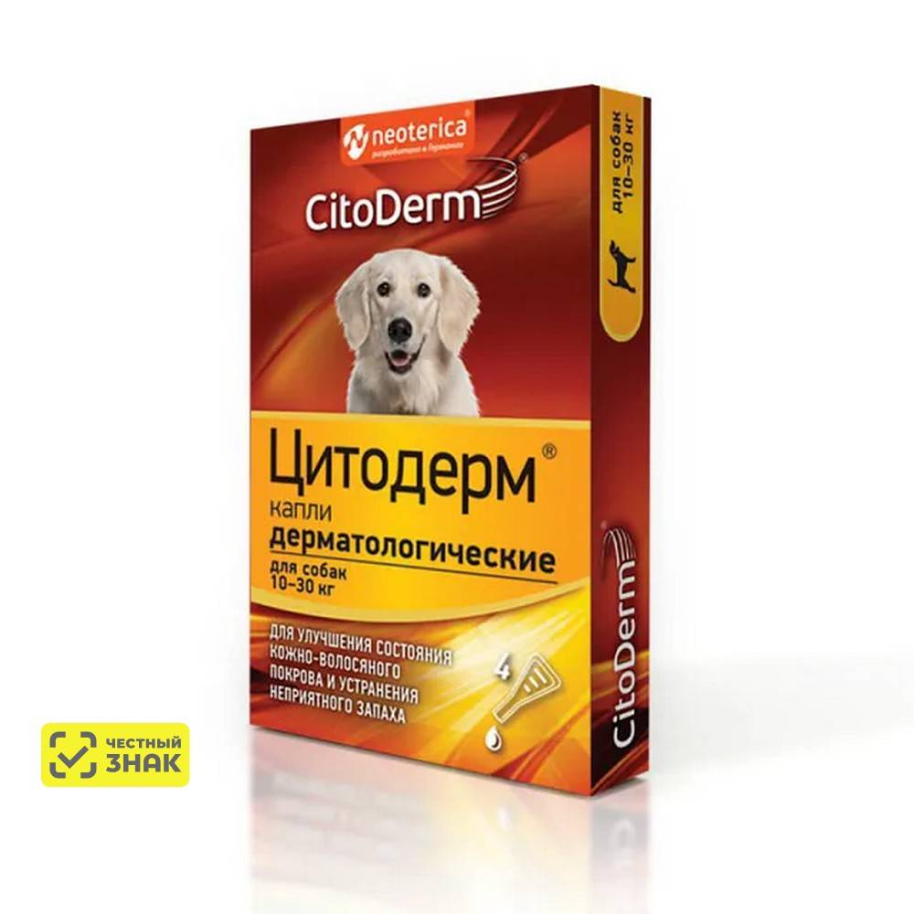 CitoDerm капли дерматологические – косметико-гигиеническое средство для комплексного ухода за кожно-волосяным покровом собак на натуральных маслах.