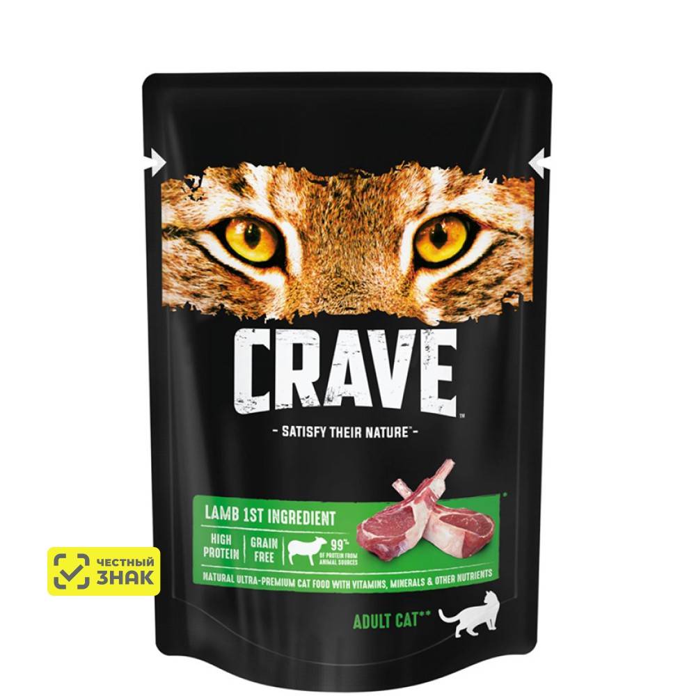 Crave Влажный корм (пауч) полнорационный для кошек всех пород старше 1 года, с ягненком, 70 г