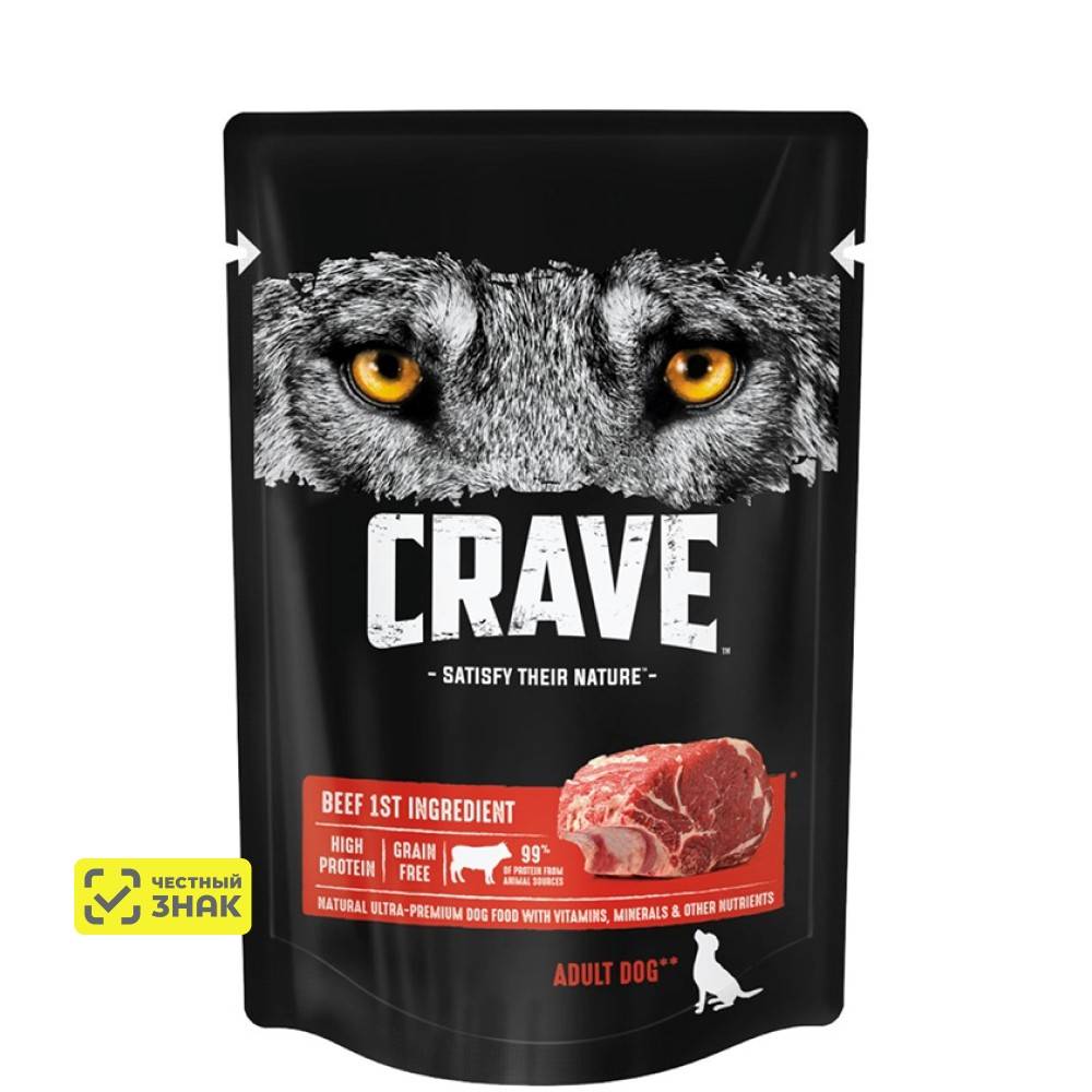 Crave Влажный корм (пауч) полнорационный для собак всех пород старше 1 года, с говядиной, 85 гр.