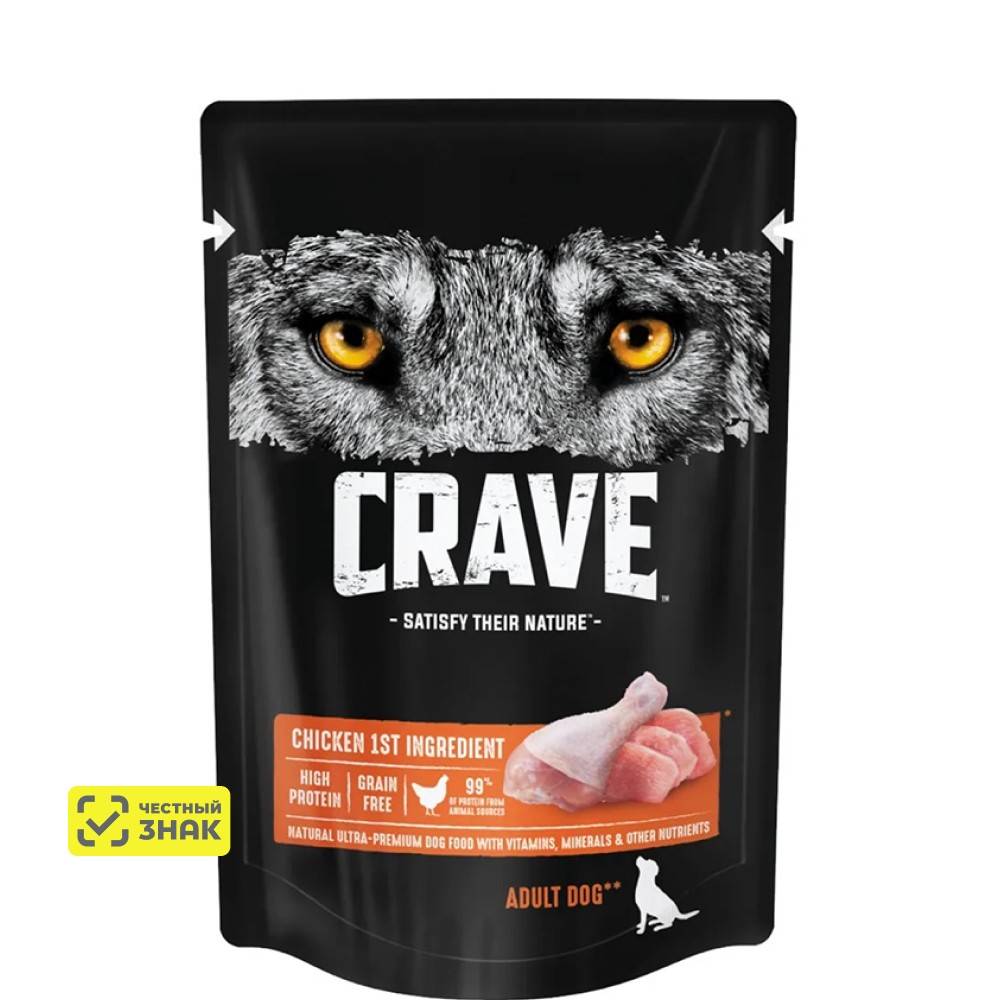 Crave Влажный корм (пауч) полнорационный для собак всех пород старше 1 года, с курицей, 85 гр.