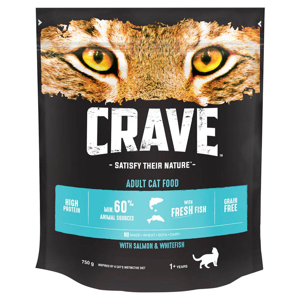 Сухой корм CRAVE для взрослых кошек, содержащий минимум 60% ингредиентов животного происхождения, вдохновлен естественным рационом кошки. Ингредиент № 1 в нем — настоящая рыба. Это придает кошке энергию, насыщает белком и поддерживает организм в тонусе. Содержит высокий уровень белка, без добавления зерновых. Произведено в Германии.