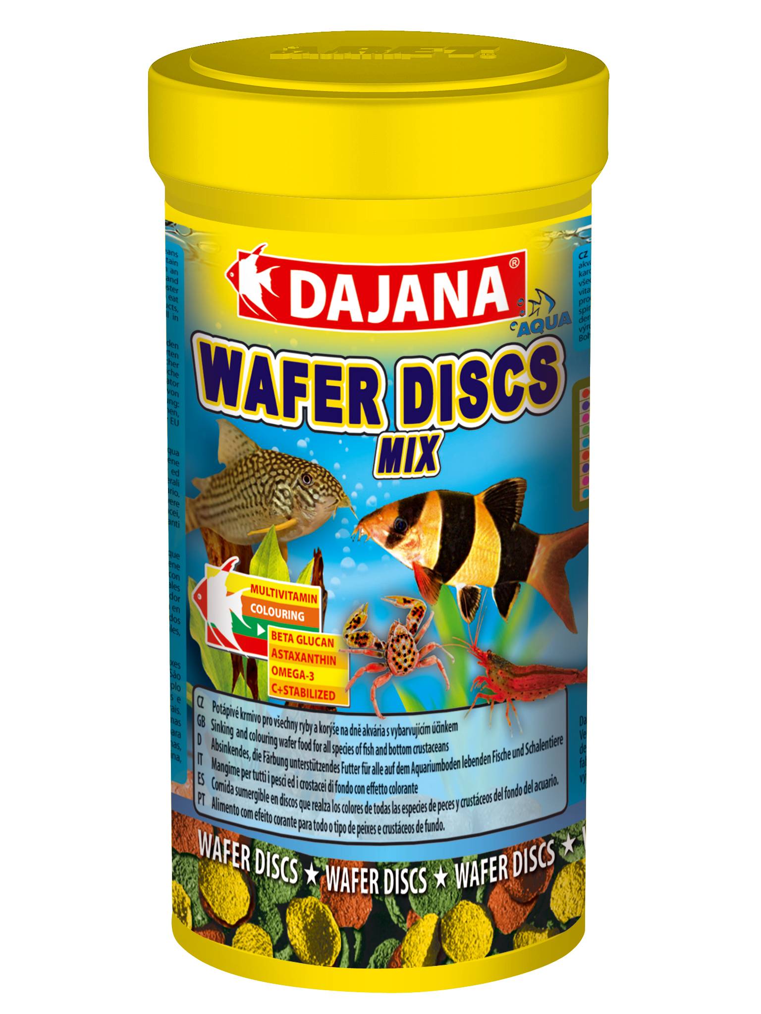 • Комплексный корм Dajana Wafer Discs Mix (Даяна Вафер Дискс Микс) в виде погружных пластинок для всех видов декоративных рыб, ракообразных, обитающих на дне пресноводных и морских аквариумов.