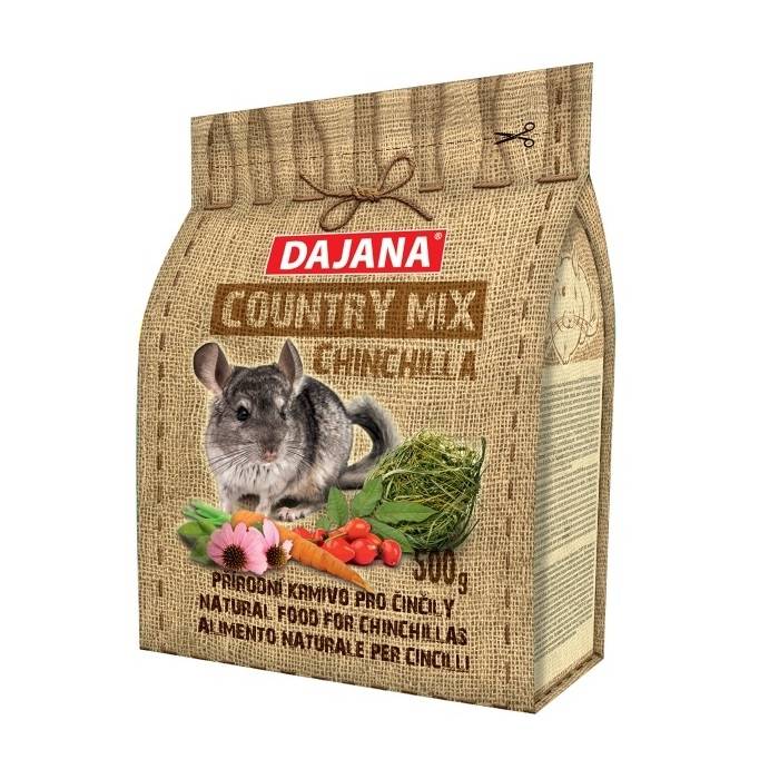 Корм для шиншилл COUNTRY MIX - первоклассно есено с горных лугов с ароматными луговыми травами, люцерна, эхинацея, плодырожкового дерева, шиповник. Эта смесь состоит из тщательно отобранных культур местного происхождения, которые являются натуральной пищей для вашего питомца, она способствует укреплению иммунитета, оказывает положительное воздействие на пищеварительную систему и обеспечивает хорошую стачиваемость зубов.