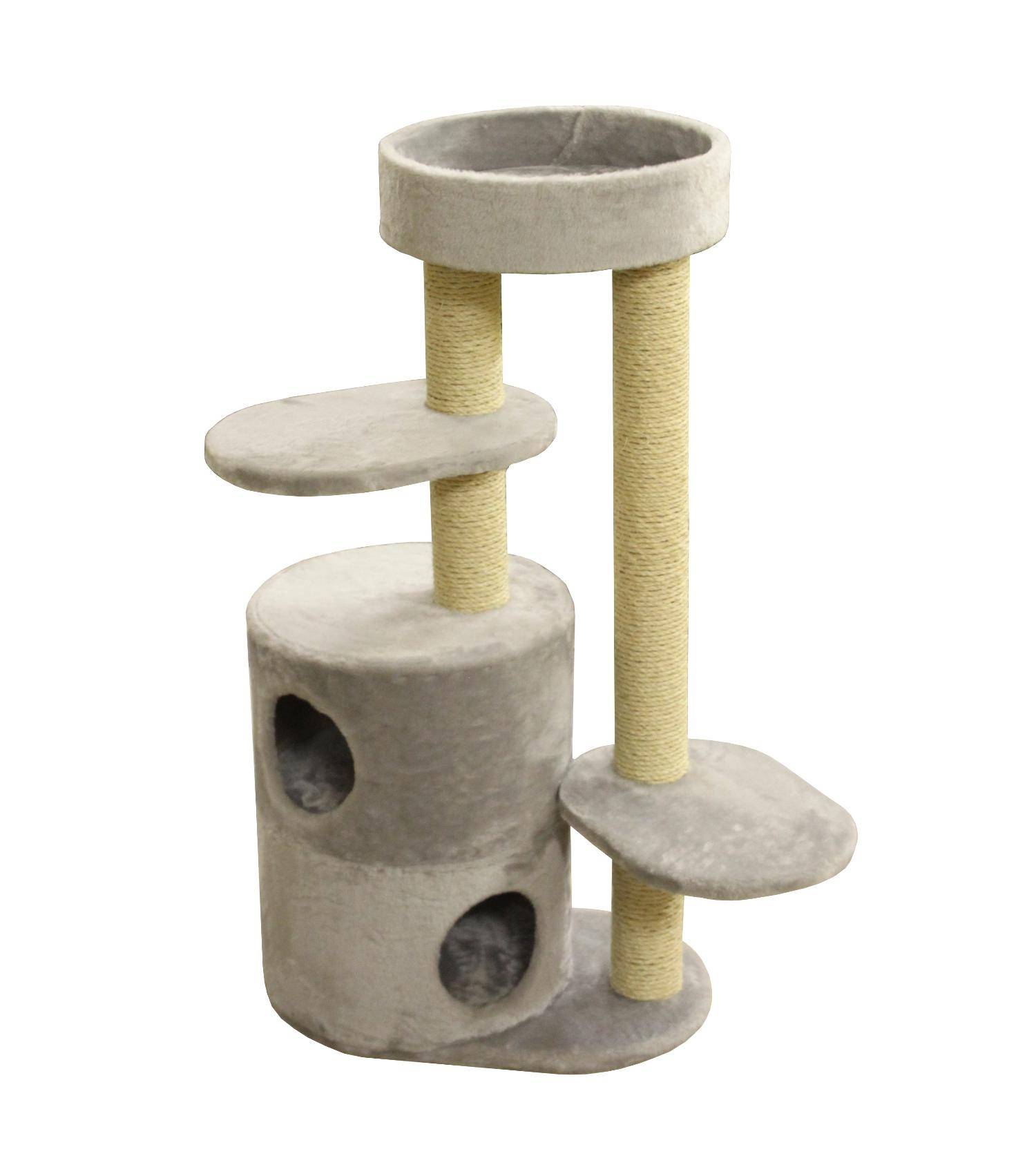 Дом — когтеточка круглый с двумя домиками и площадками, светло-серый, 30х60х118 см