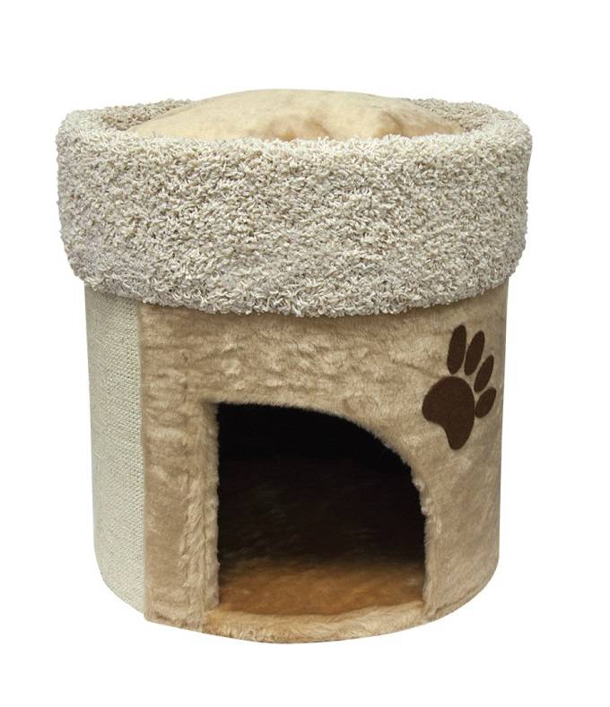 Домоседы Дом-когтеточка (47х47х47 см) круглый с лежанкой для кошек, бежевый