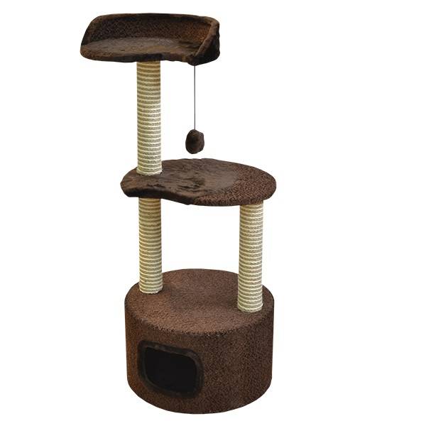 Дом круглый Домоседы коричневого цвета – это конструкция для котов, в которой домашние питомцы смогут спать, играть, точить коготки. Она состоит из домика и двух ярусов, а также имеет в виде бонуса игрушку – шарик на веревке. Один из самых главных плюсов конструкции – это наличие столбиков-когтеточек, которые позволят выполнять важную для кота процедуру, вместе с тем, не используя для этого мягкую мебель и другие предметы интерьера. Домик, при этом покрыт ковролином – излюбленным материалом многих котов.
