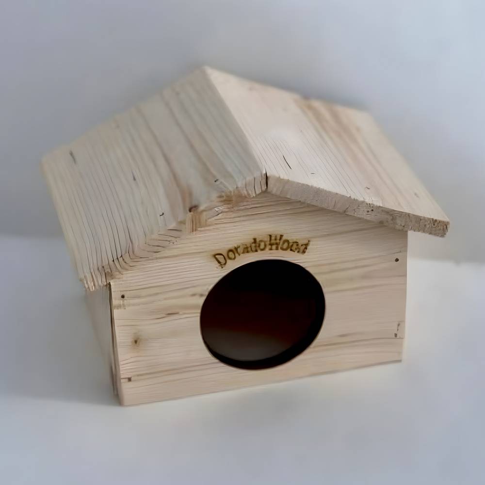 Дом - шалаш малый DORADOWOOD - прекрасно подойдет таким грызунам как мыши, хомяки и песчанки. Такой дом станет не только прекрасным украшением в клетке, но и принесет практическую пользу грызуну, так как является не только прекрасным укрытием от света и сквозняка, но и тренажером для стачивания постоянно растущих зубов грызуна. Поверхность древесины прекрасно зачищена, гладкая, что исключает ранение грызуна о торчащие острые элементы конструкции и занозы.