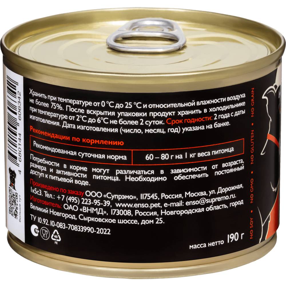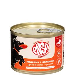 ENSO SENSITIVE Полнорационный влажный корм для поддержания здоровья ЖКТ взрослых собак индейка с яблоком. Монопротеин. Рубленое мясо с гречкой.