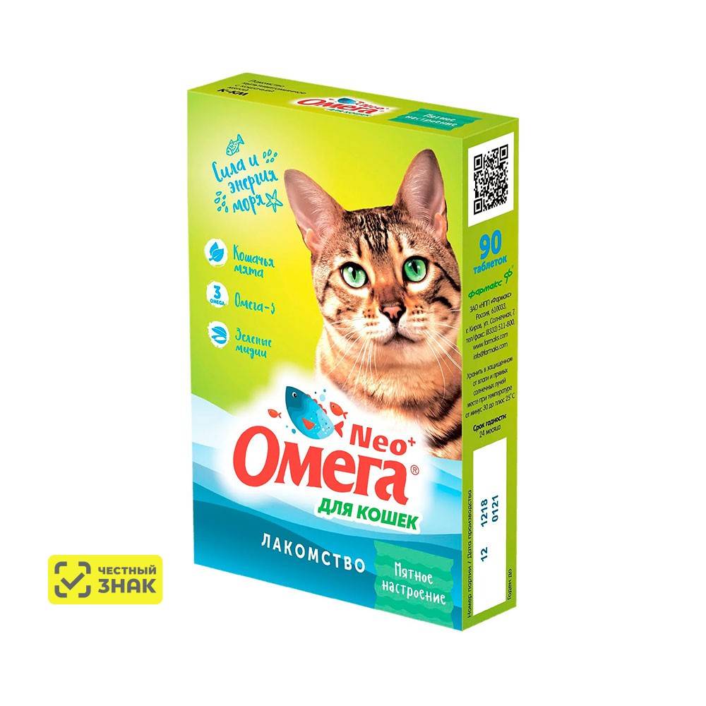 Омега Neo+ — вкусное и полезное лакомство для поощрения, баловства и хорошего настроения кошек.