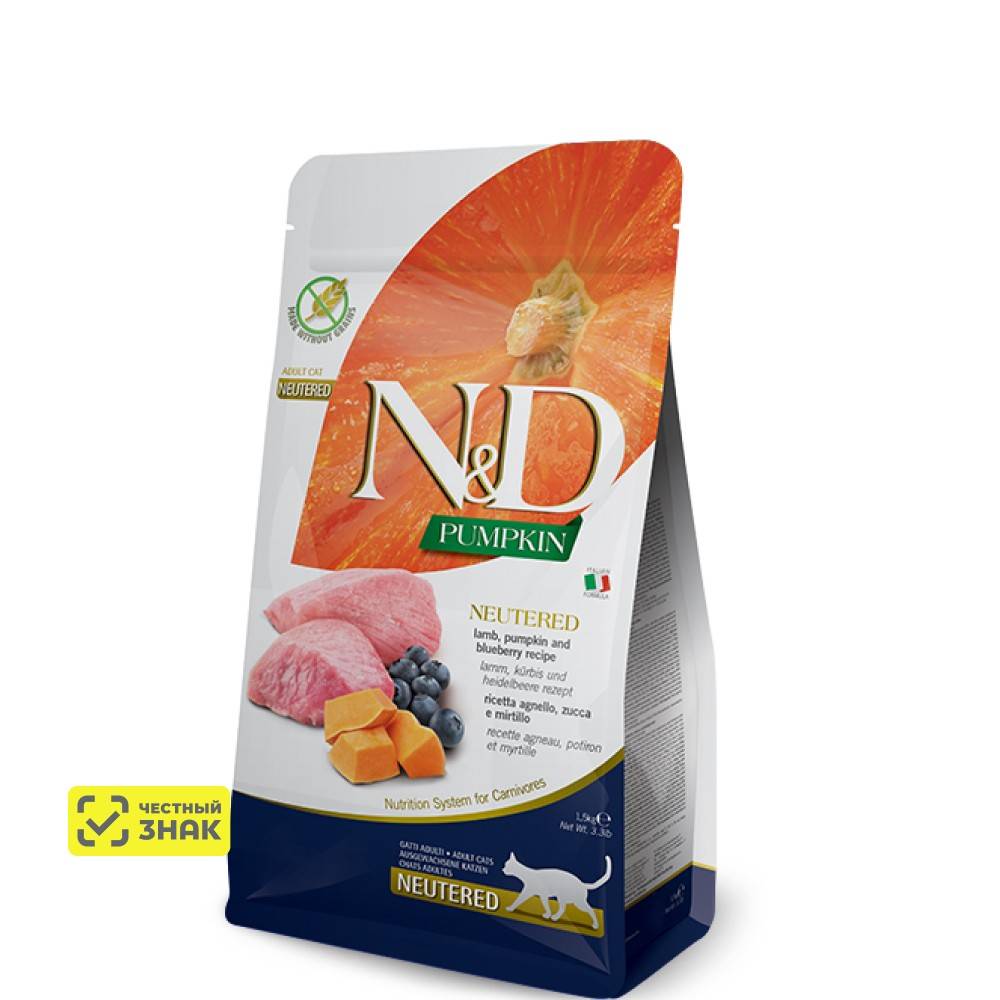 Farmina ND PUMPKIN Сухой корм для стерилизованных кошек и кастрированных котов, с ягненком, тыквой и черникой, 1,5 кг