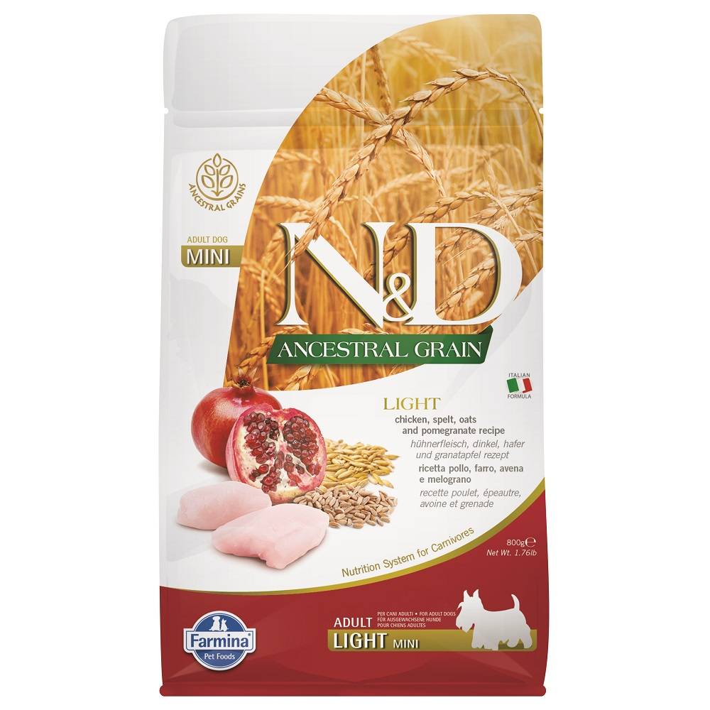 Полнорационный низкозерновой сухой корм Farmina Mini Lightна основе куриного мяса специально разработан для взрослых собак мелких пород.