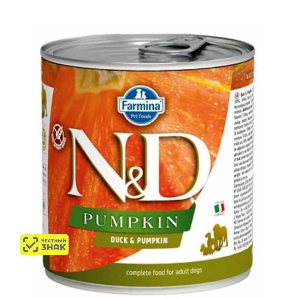 Корм для собак Фармина Duck & Pumpkin. Утка и тыква. Полнорационный влажный корм для взрослых собак.