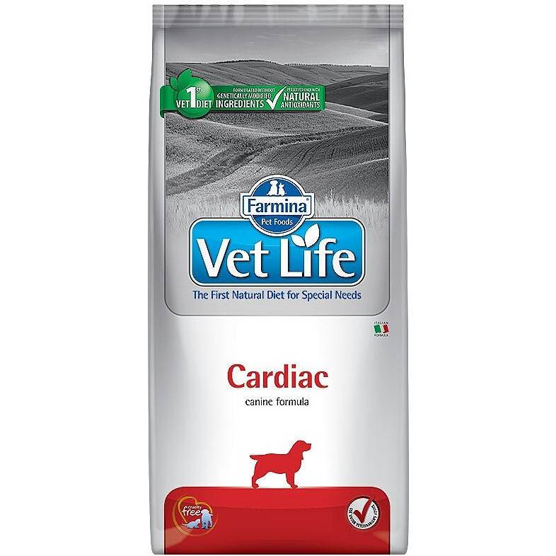 Farmina Vet Life Cardiac – диетический сухой корм для собак для поддержания работы сердца при хронической сердечной недостаточности. Диета содержит низкий уровень натрия и оптимальное соотношение калия/натрия.