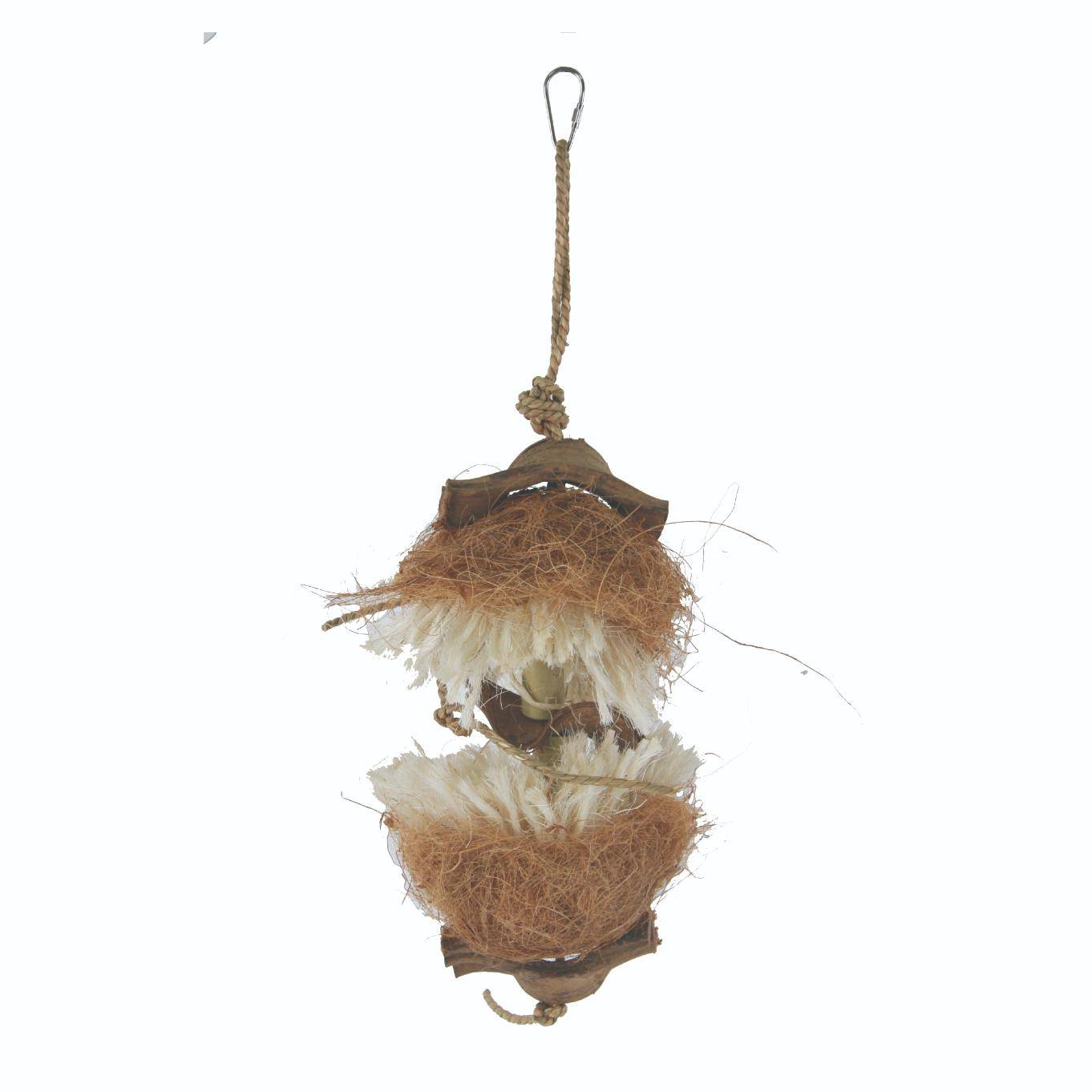 Игрушка для птиц Кокосовая причуда Преимущества: Подвесная игрушка для птиц из натуральных материалов. С деревянными бусинами в центре. Игрушки необходимы для птиц, чтобы они не скучали в ваше отсутствие.