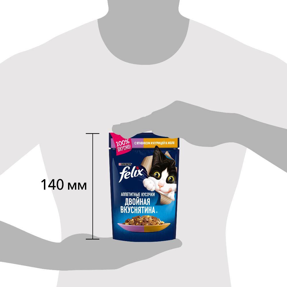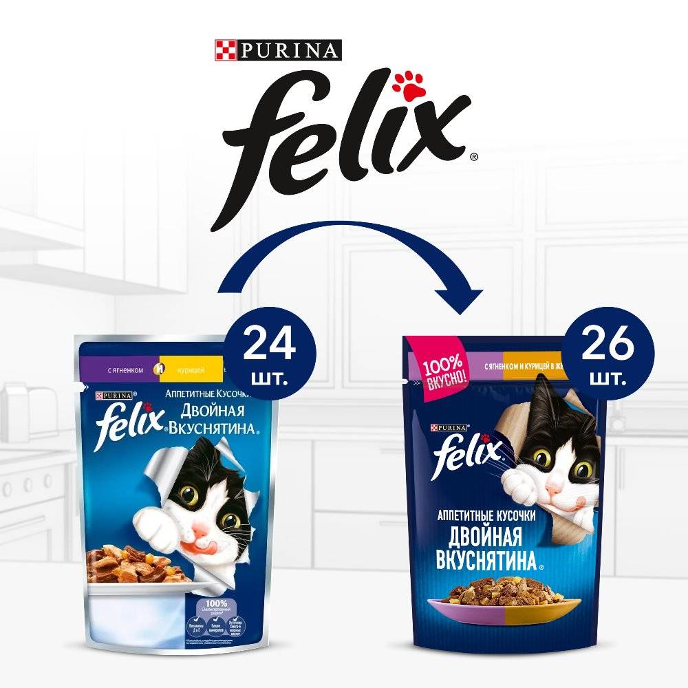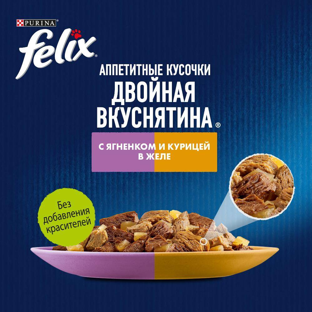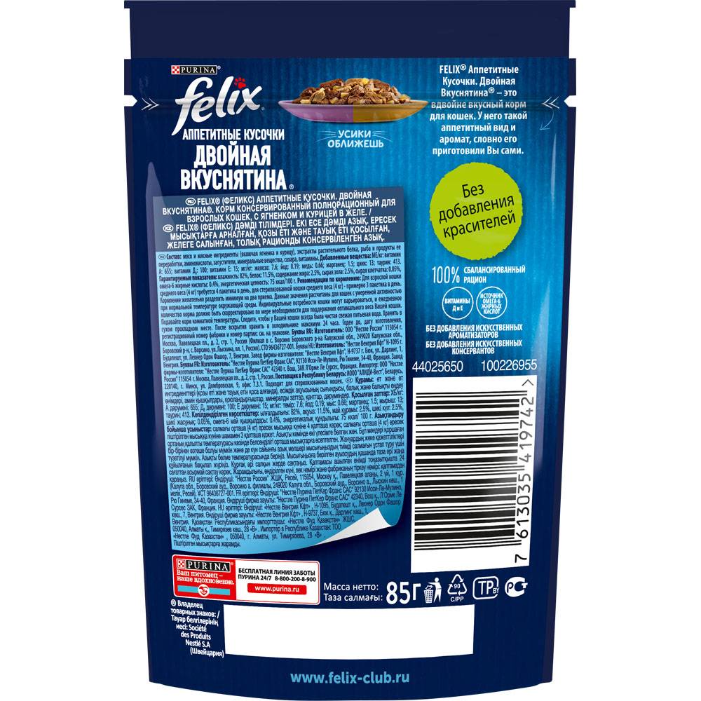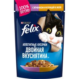 Felix Влажный корм (пауч) для взрослых кошек Двойная вкуснятина, с ягненком и курицей в желе, 85 гр.