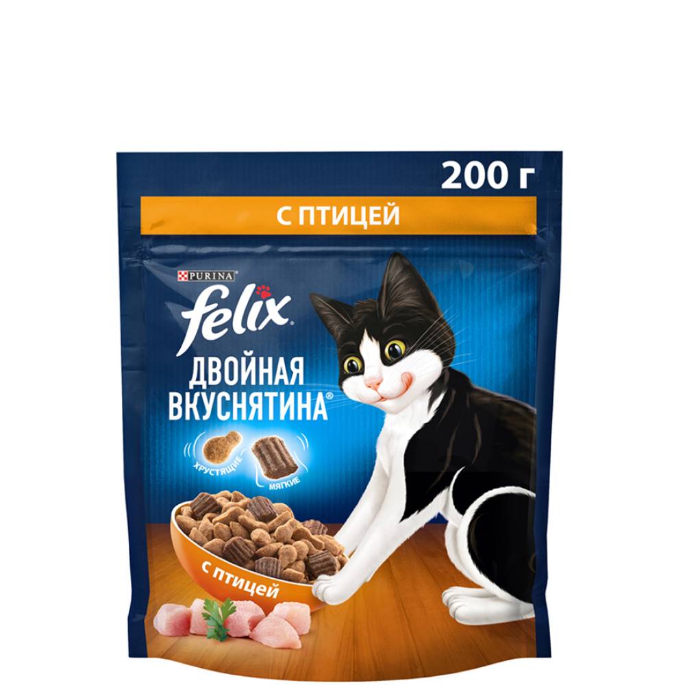 Felix Cухой корм для взрослых кошек Двойная вкуснятина, с птицей, 200 гр.