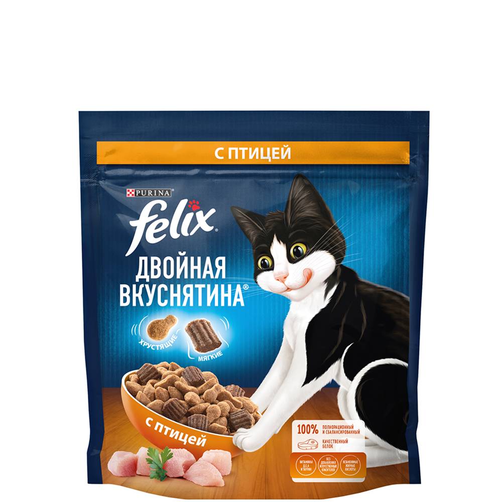 Felix Cухой корм для взрослых кошек Двойная вкуснятина, с птицей, 600 гр.