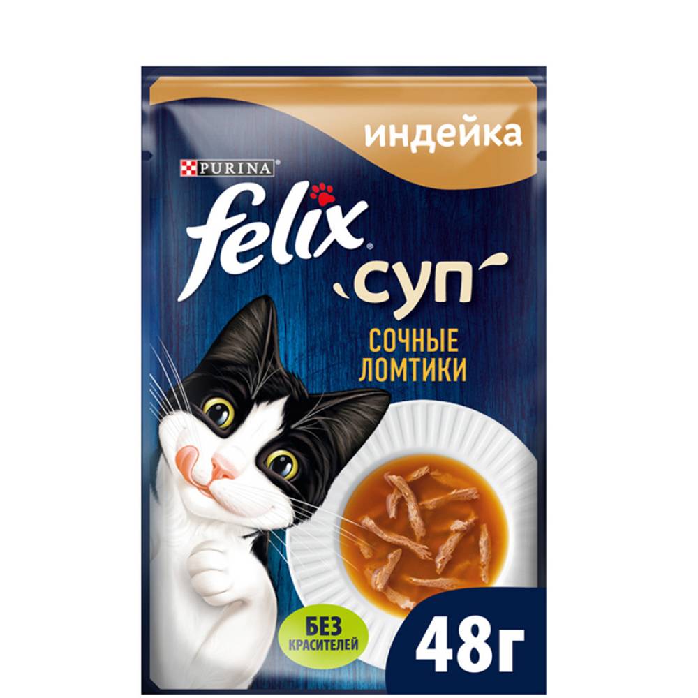Felix Влажный корм (пауч) для взрослых кошек Сочные Ломтики, суп с индейкой, 48 гр.