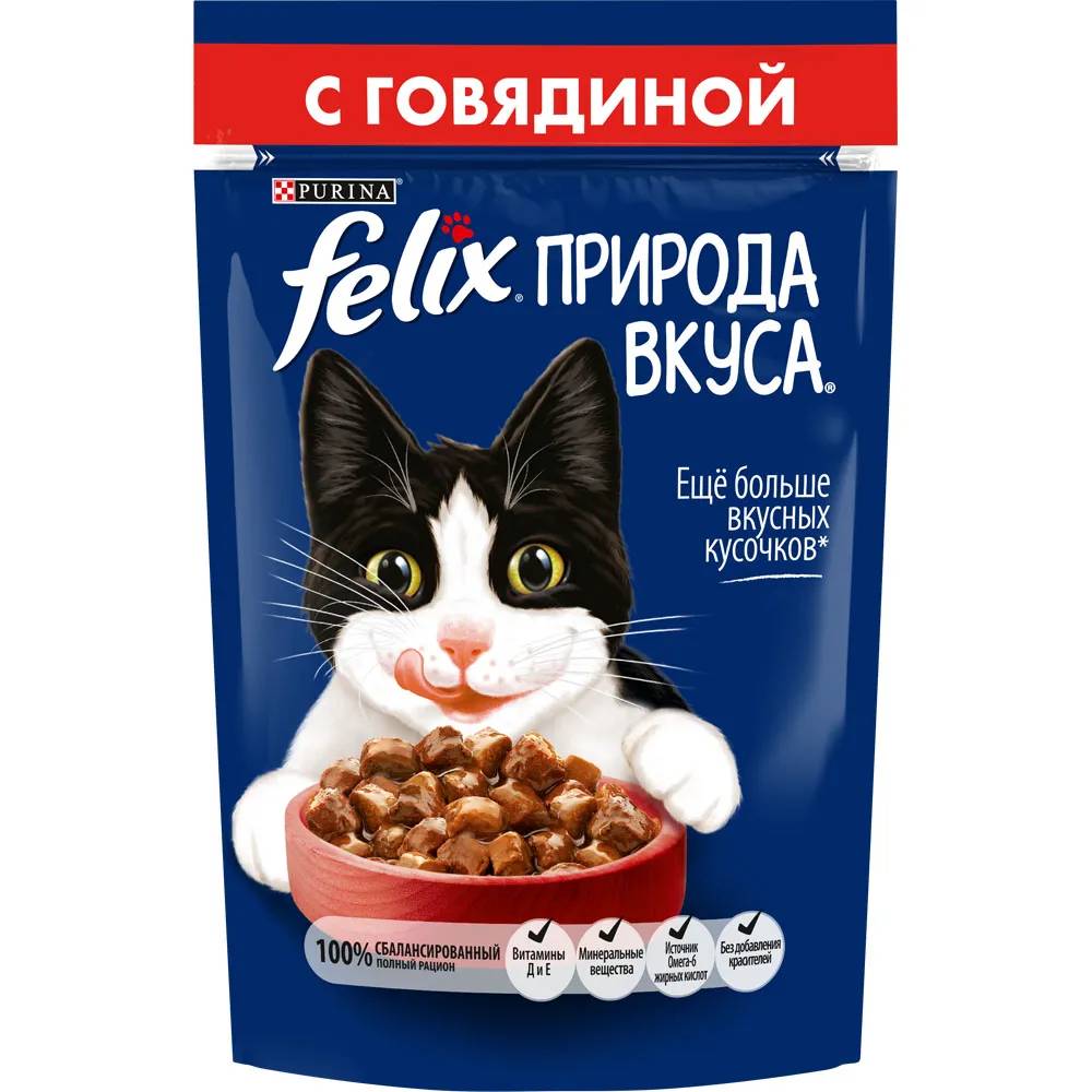 Felix Влажный корм (пауч) для взрослых кошек Природа вкуса, с говядиной в соусе, 85 гр.