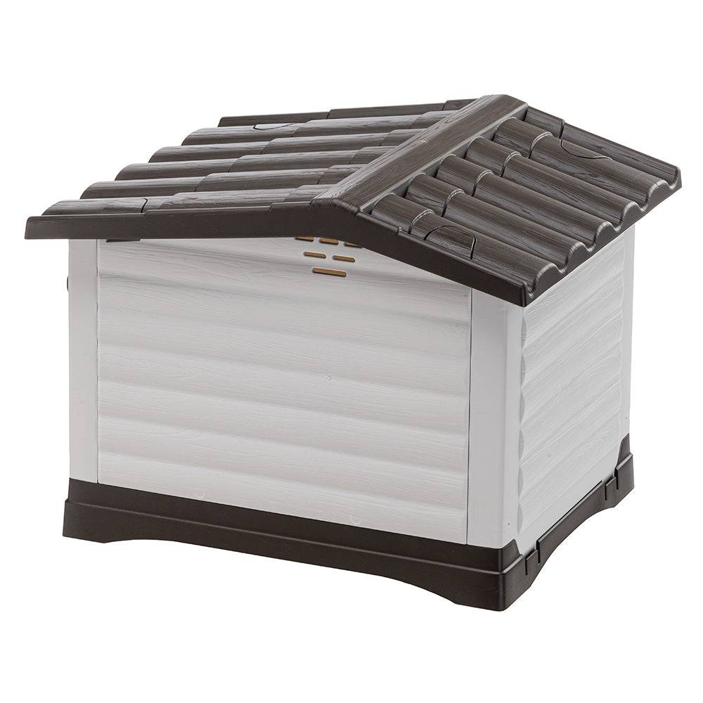 Dogvilla - будка для использования на улице из прочного пластика с запатентованной системой открывания боковой панели.