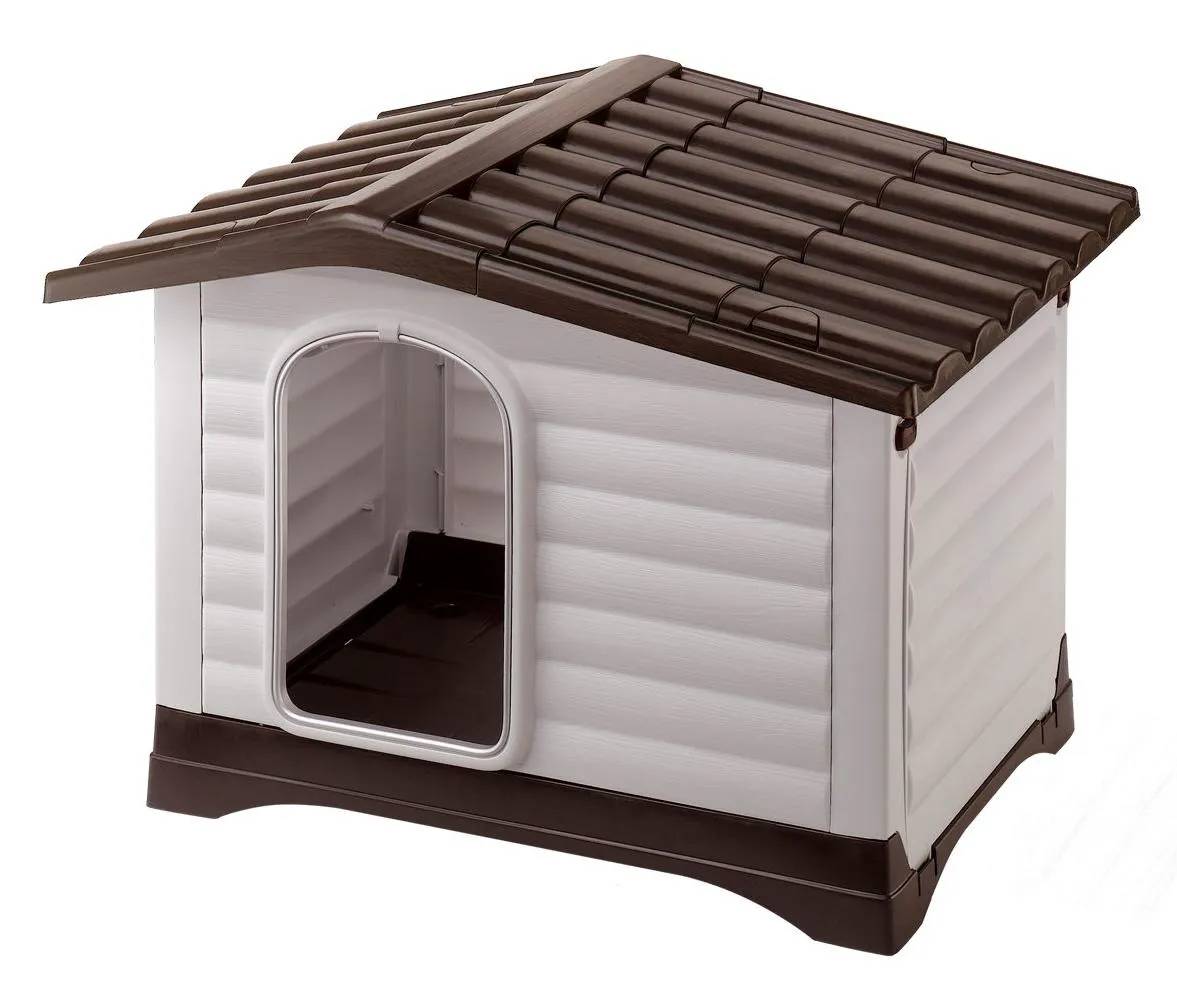 Dogvilla - будка для использования на улице из прочного пластика с запатентованной системой открывания боковой панели.