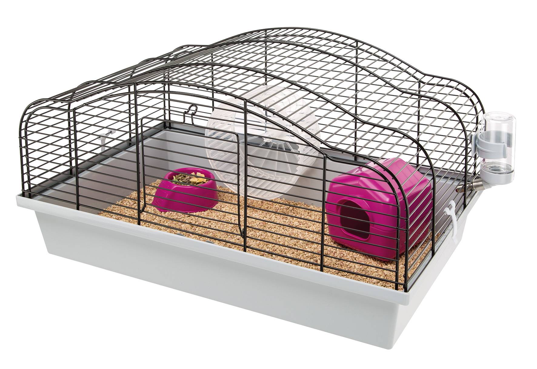 Oriente 10 - традиционная клетка для хомяков с пластиковым поддоном и окрашенной металлической решеткой. Закругленная форма клетки придает оригинальную утонченность клетке. В передней части клетки Oriente 10 установлена открывающаяся дверка; в комплекте идут все необходимые аксессуары: гнездо, кормушка, поилка и пластиковое колесо.