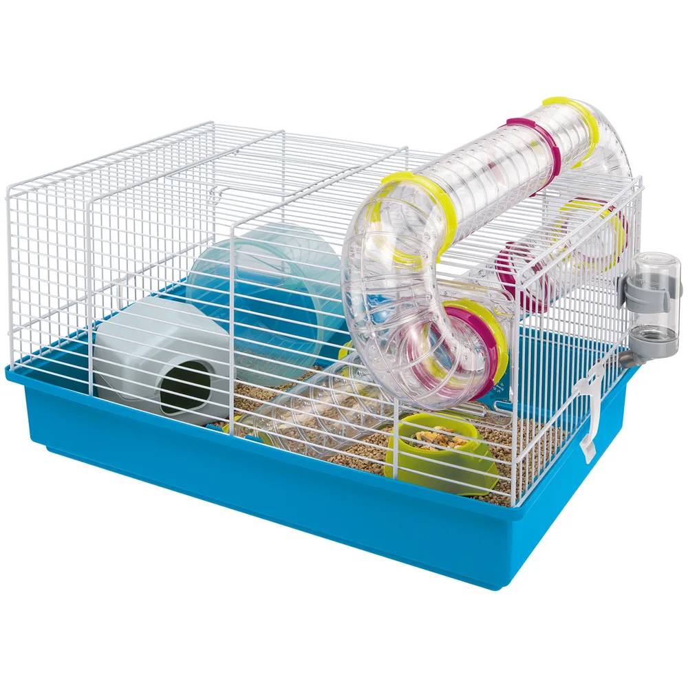 Клетка для хомяков Paula выполнена в традиционном стиле и состоит из пластикового поддона и окрашенной стальной проволоки. Идет в комплекте с аксессуарами для грызунов, такими, как гнездо, кормушка, поилка, пластиковое колесо, а также прозрачные игровые туннели. Клетка Paola выпускается в интересной цветовой гамме.