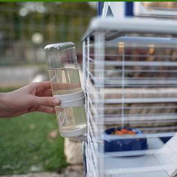 И это ещё не всё: за этой клеткой очень легко ухаживать благодаря полностью открывающейся крыше, которая обеспечивает свободный доступ внутрь клетки для повседневной уборки. Для более тщательной уборки основание и верх клетки можно отделить друг от друга, отщёлкнув фиксаторы по бокам.