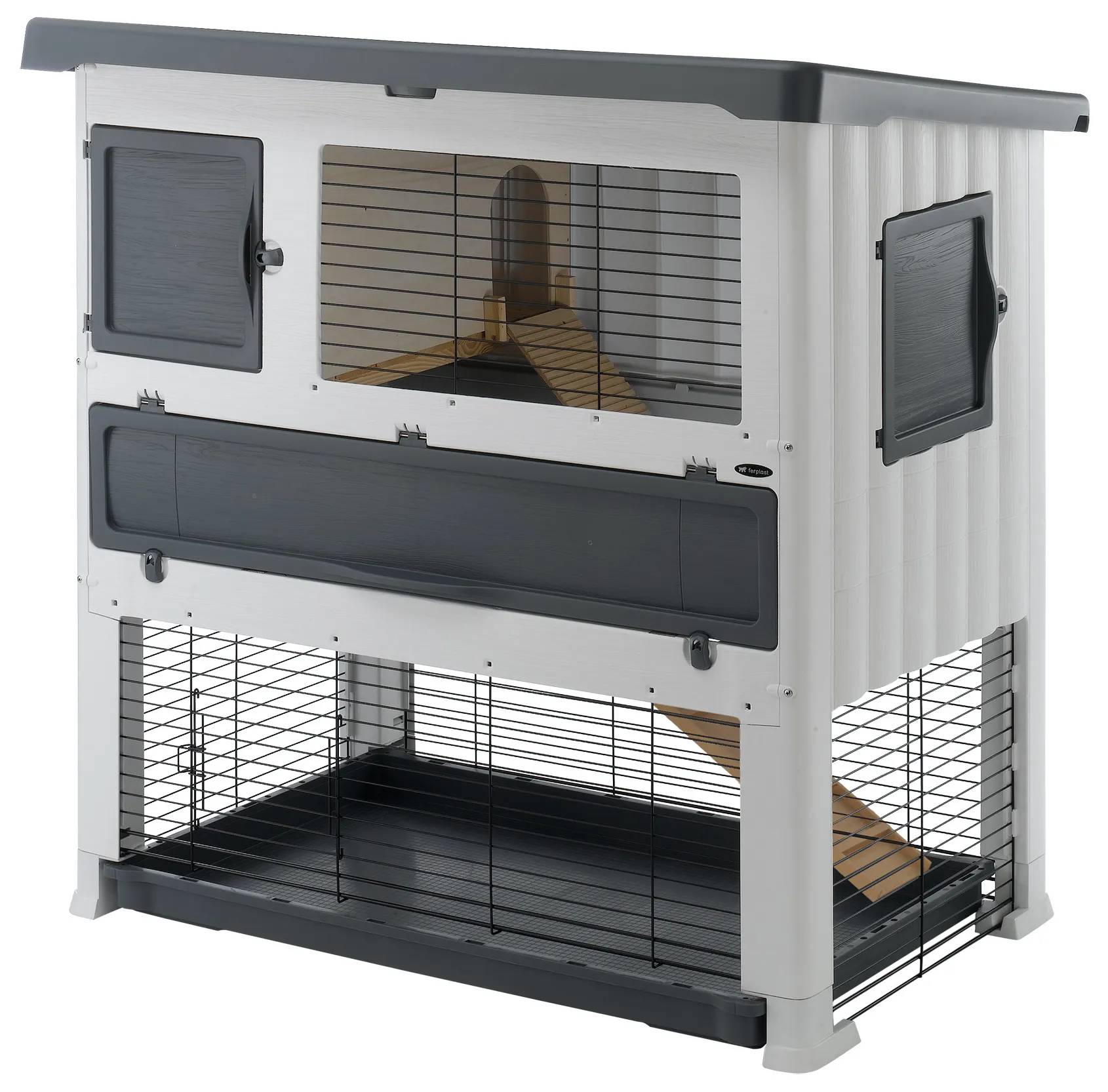 Клетки Grand Lodge 120 и 140 Plus станут идеальным домом для активных кроликов. Эти пластиковые клетки имеют очень прочную структуру со слегка наклонной крышей и закругленными внешними контурами. Выпускается одного цвета с темно-серыми комплектующими. Клетка Grand Lodge Plus - это настоящий двухэтажный дом! Верхний этаж идеально подходит для сна и оборудован уютным домиком с деревянными элементами и лесенкой. Нижняя часть может быть использована как площадка для игр, еды и питья. Благодаря удобной открывающейся дверке ваш питомец сможет выходить из клетки и гулять по дому, на террасе или саду.