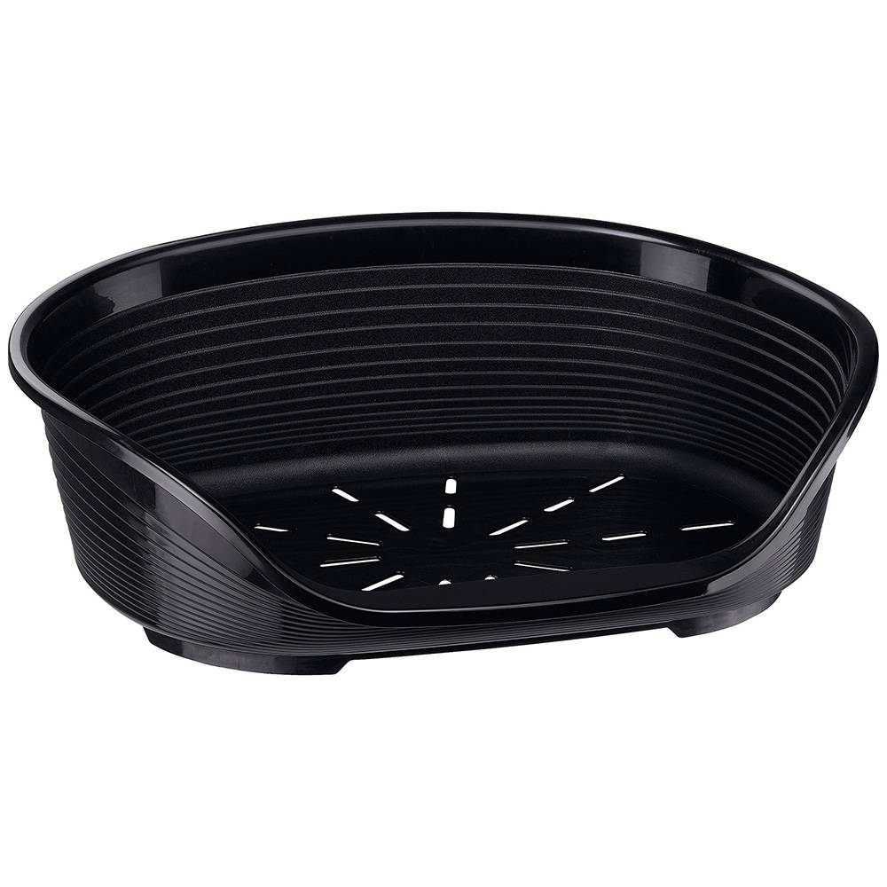 Уютный пластиковый лежак овальной формы для использования в помещении, идеально подходит для собак и кошек. Обратите ваше внимание на дизайн лежака: он имеет бортики сзади и по бокам, спереди идет открытая зона с ровной поверхностью. Лежак оснащен антискользящими опорами, а нижняя часть имеет перфорацию для циркуляции воздуха.