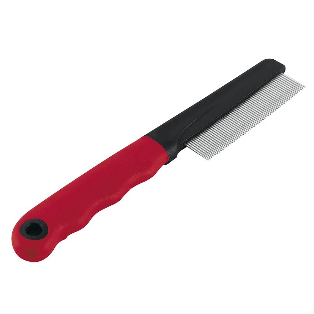 Эта расческа для собак и кошек с пластиковой ручкой идеально подходит для животных со средней и длинной шерстью. GRO 5856 имеет зубья из хрома с закругленными кончиками для защиты от повреждений кожи.