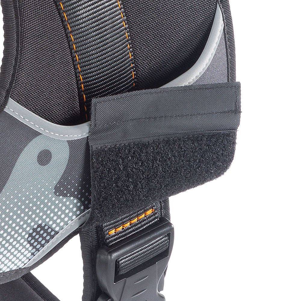 Практичность, прочность и комфорт в одном продукте! Представляем Hercules, эргономичную шлейку для собак, изготовленную из сверхпрочных и устойчивых к царапинам материалов, в комплекте с мягкой подкладкой в каждой части, которая соприкасается с телом вашей собаки, особенно в области живота. Удобная мягкая ручка гарантирует надежный захват и отличный контроль над вашим питомцем. В более крупных моделях ручка может быть опущена и заблокирована специальными прижимными кнопками, что позволяет ей более плотно прилегать к шлейке и занимать меньше места. Шлейка Hercules безопасна для вашего питомца благодаря пластиковой застежке-пряжке и имеет светоотражающие полосы, гарантирующие видимость даже в условиях плохого освещения, что делает ее идеальной для прогулок вечером или ночью. Все модели оснащены липучками, позволяющими прикреплять логотипы или персонализированные эмблемы, которые также могут быть сняты, когда не используются.