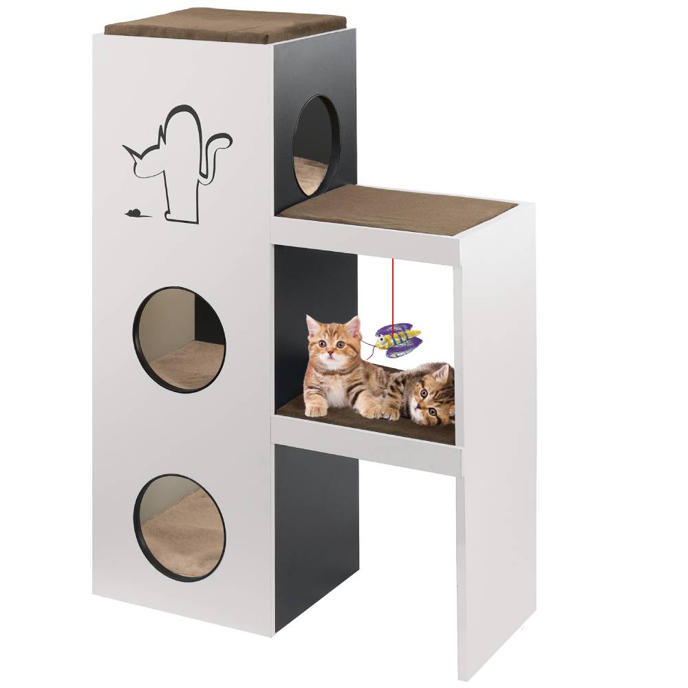 Спально-игровой комплекс с домиком и когтеточкой NAPOLEON трехярусный, белый/коричневый, 40х79х115 см