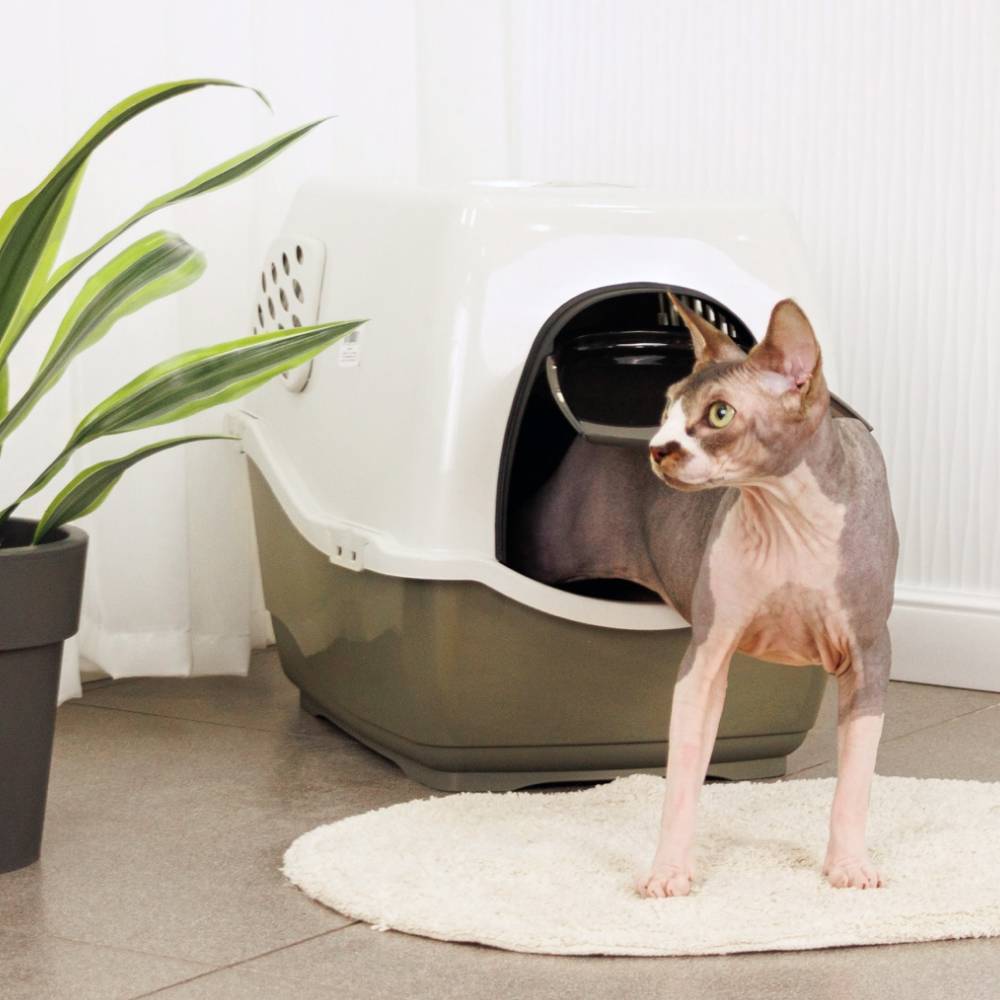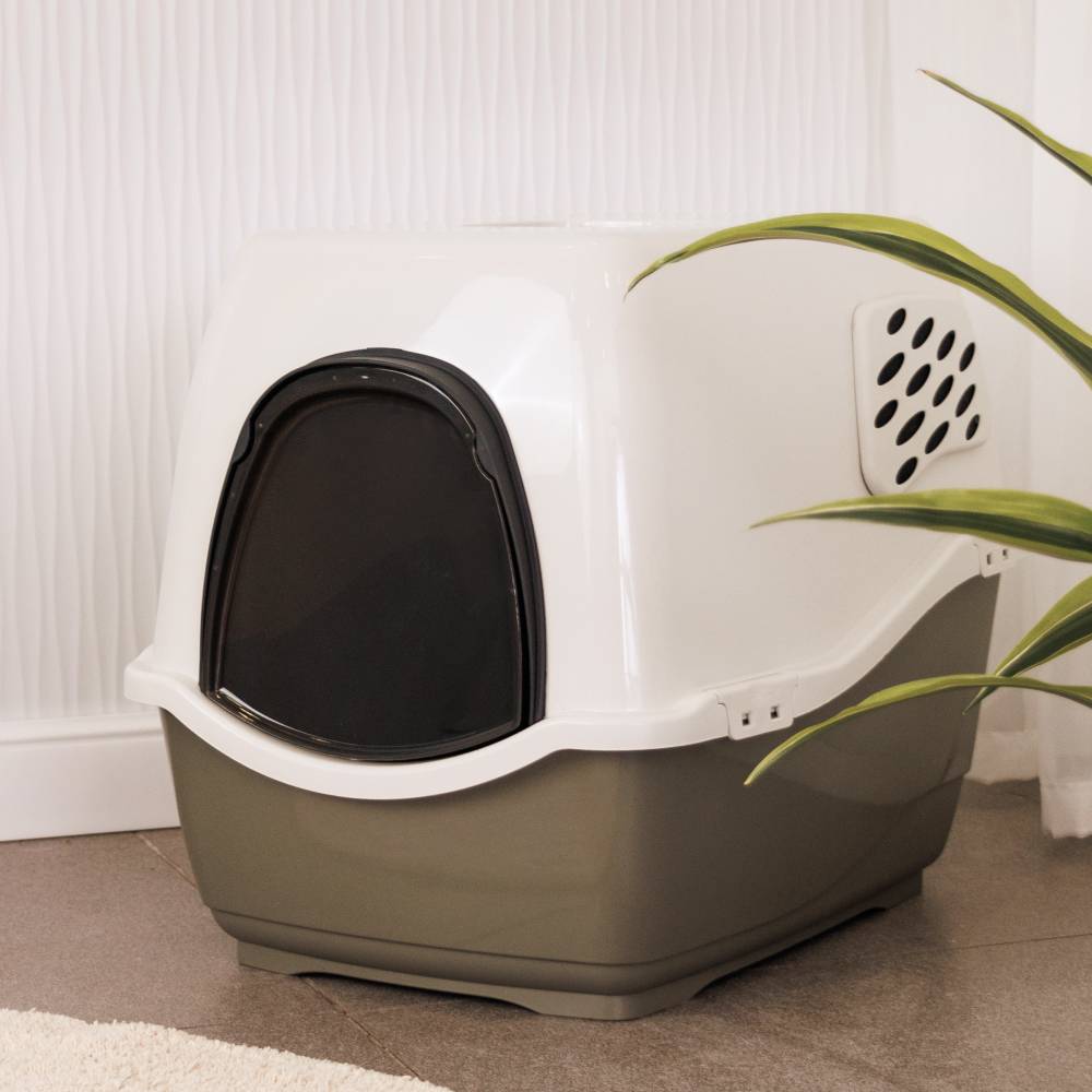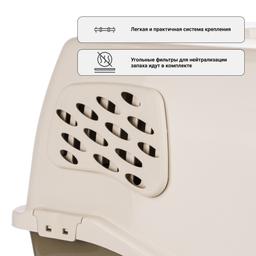 - Подвижная передняя створка позволяет животному самостоятельно пользоваться туалетом.