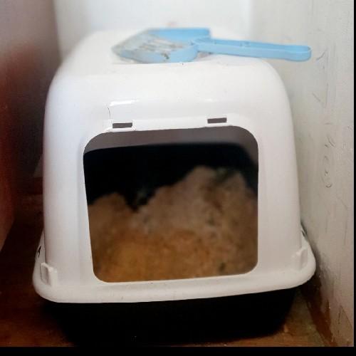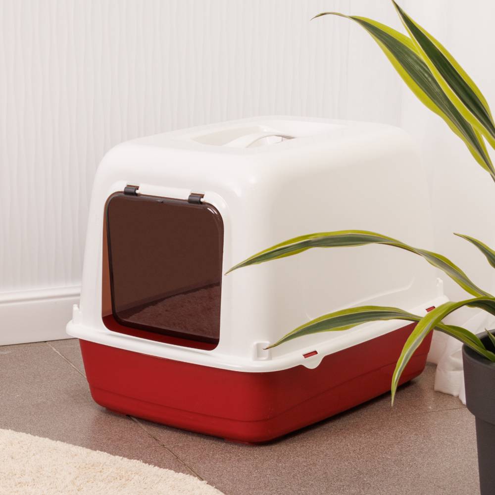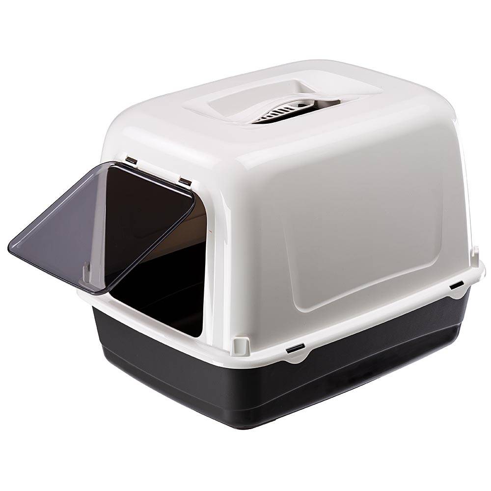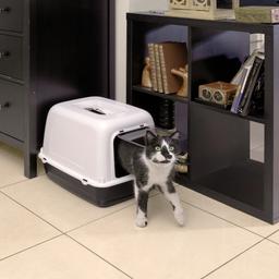 Удобный закрытый туалет с угольным фильтром для кошек небольших размеров.