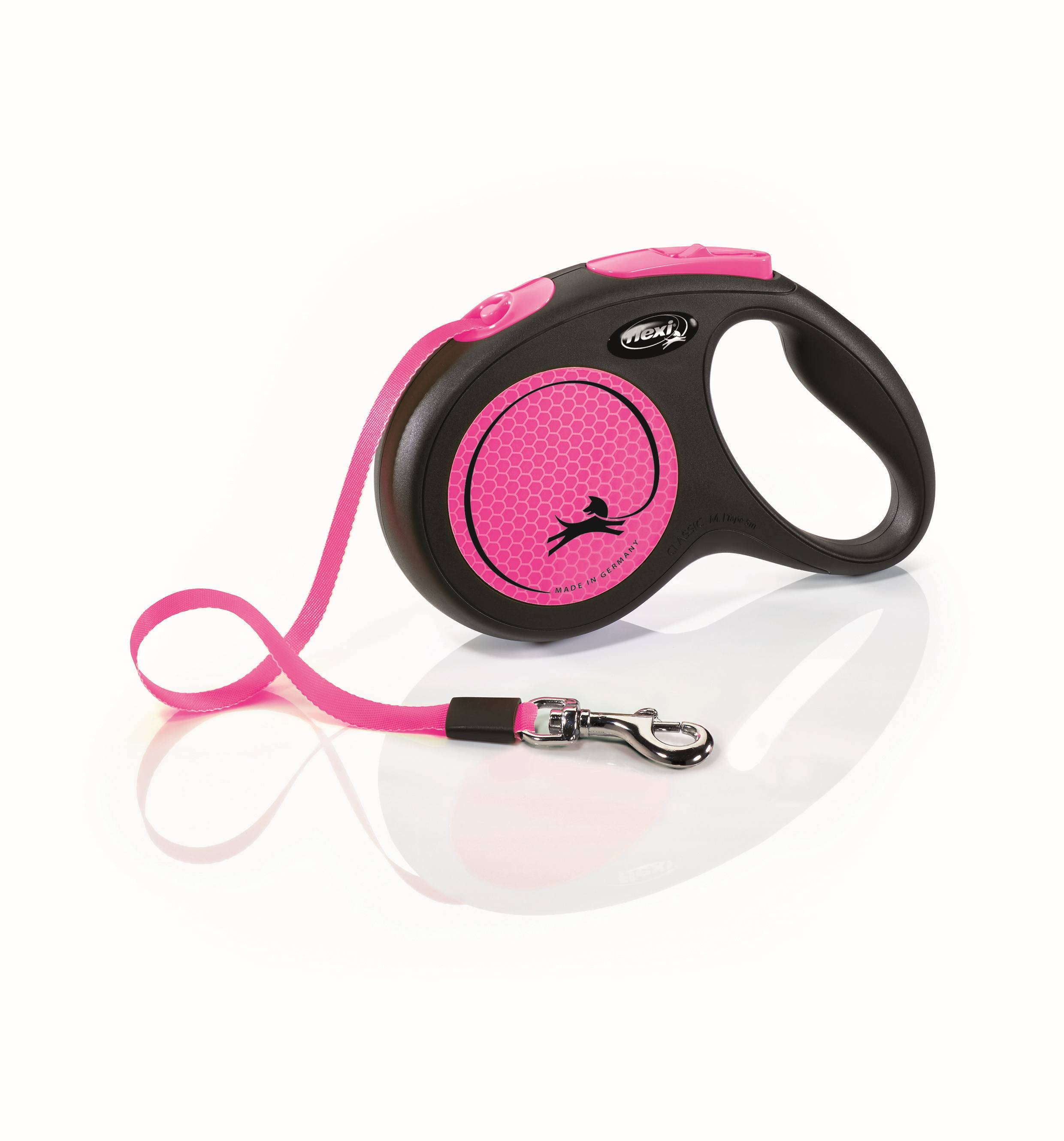Рулетка NEW NEON M ремень 5 м до 25 кг, черный/неон розовый