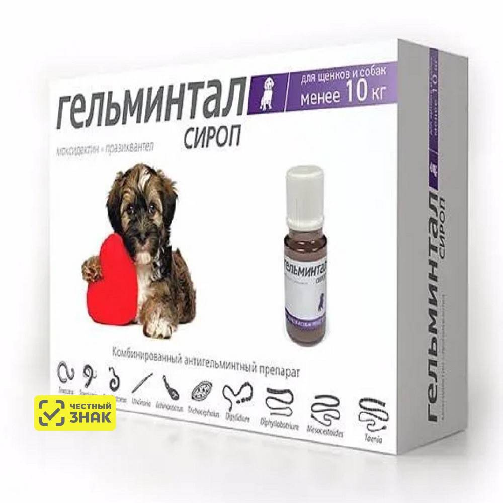Гельминтал Сироп для щенков и собак эффективно уничтожает: