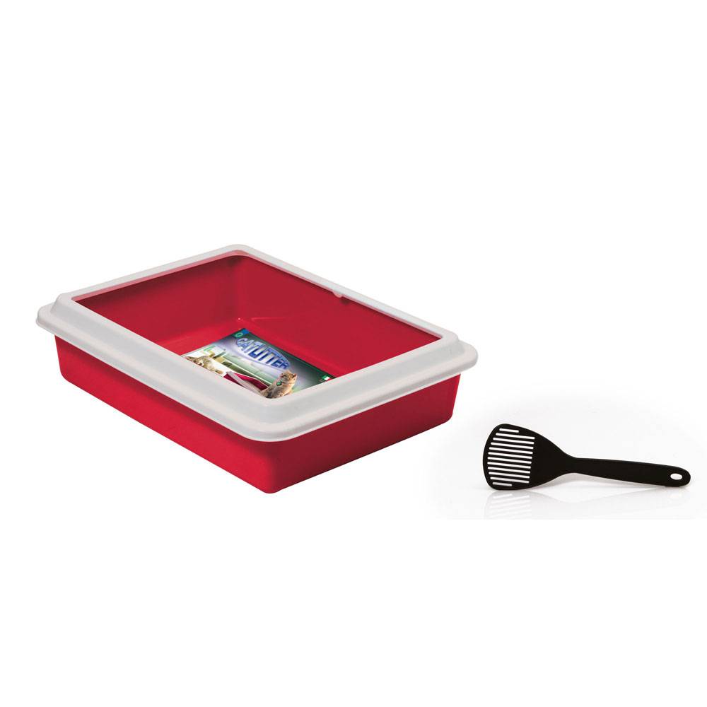 Georplast Туалет с бортом и совком для кошек, 43,5х34х11 см, красный