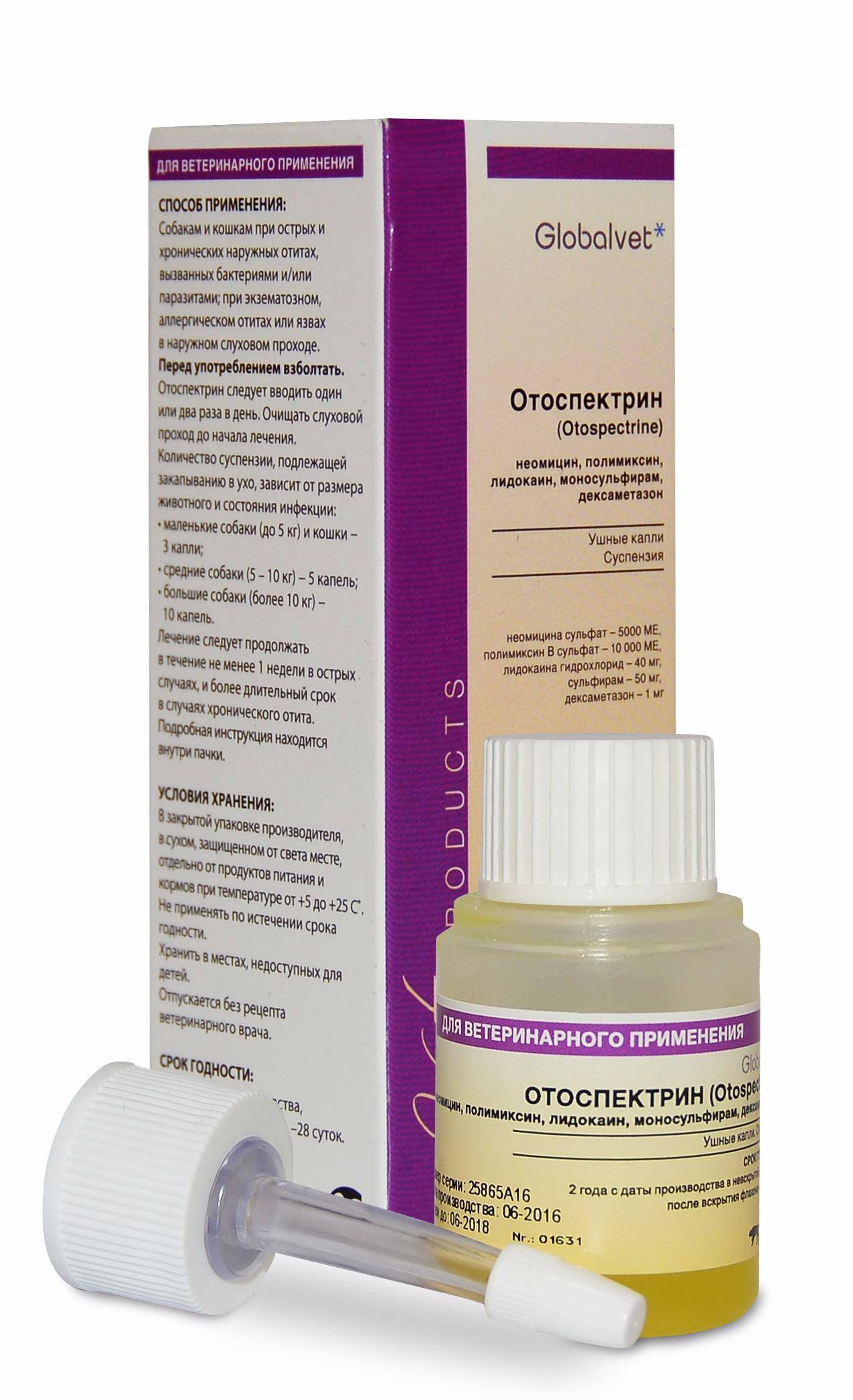 Для лечения острых и хронических наружных отитов, вызванных бактериями и/или паразитами; при экзематозном и аллергическом отитах или язвах в наружном слуховом проходе.